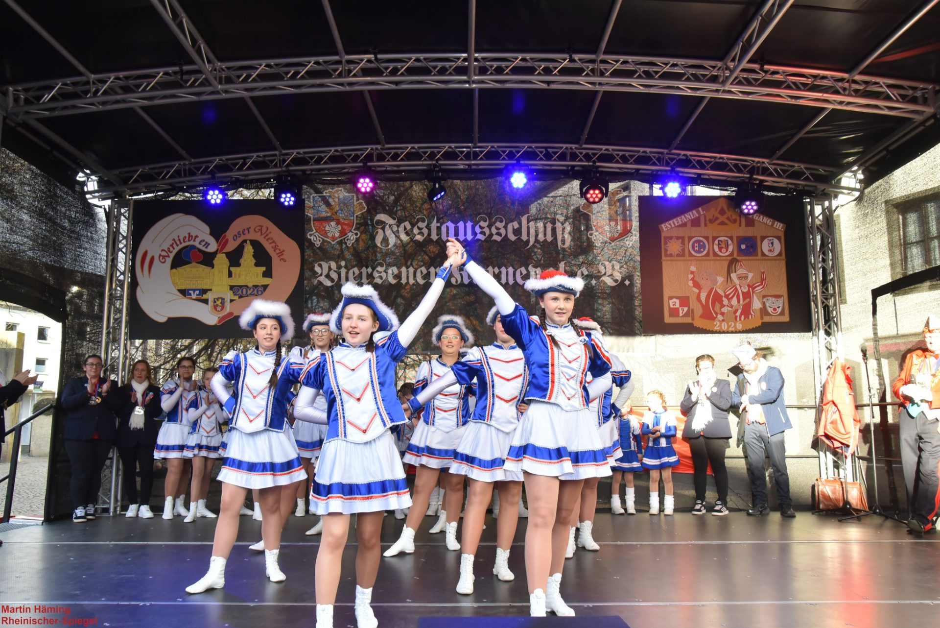 Kein Stuhl weit und breit – das 4. Närrische Biwak des Festausschusses Viersener Karneval war eine Stehveranstaltung unter freiem Himmel im besten Sinne: Man stand zusammen, man rückte zusammen, man feierte Schulter an Schulter. Der Duft von Frühschoppen, Hopfenkaltschorle und Vorfreude lag in der Luft, während sich die Bühne langsam füllte und der Platz pulsierte wie ein einziges großes, schlagendes Jeckenherz.